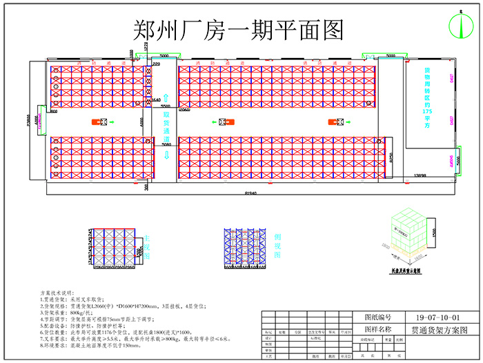 鄭州汽車行業倉庫貫通貨架方案布局圖